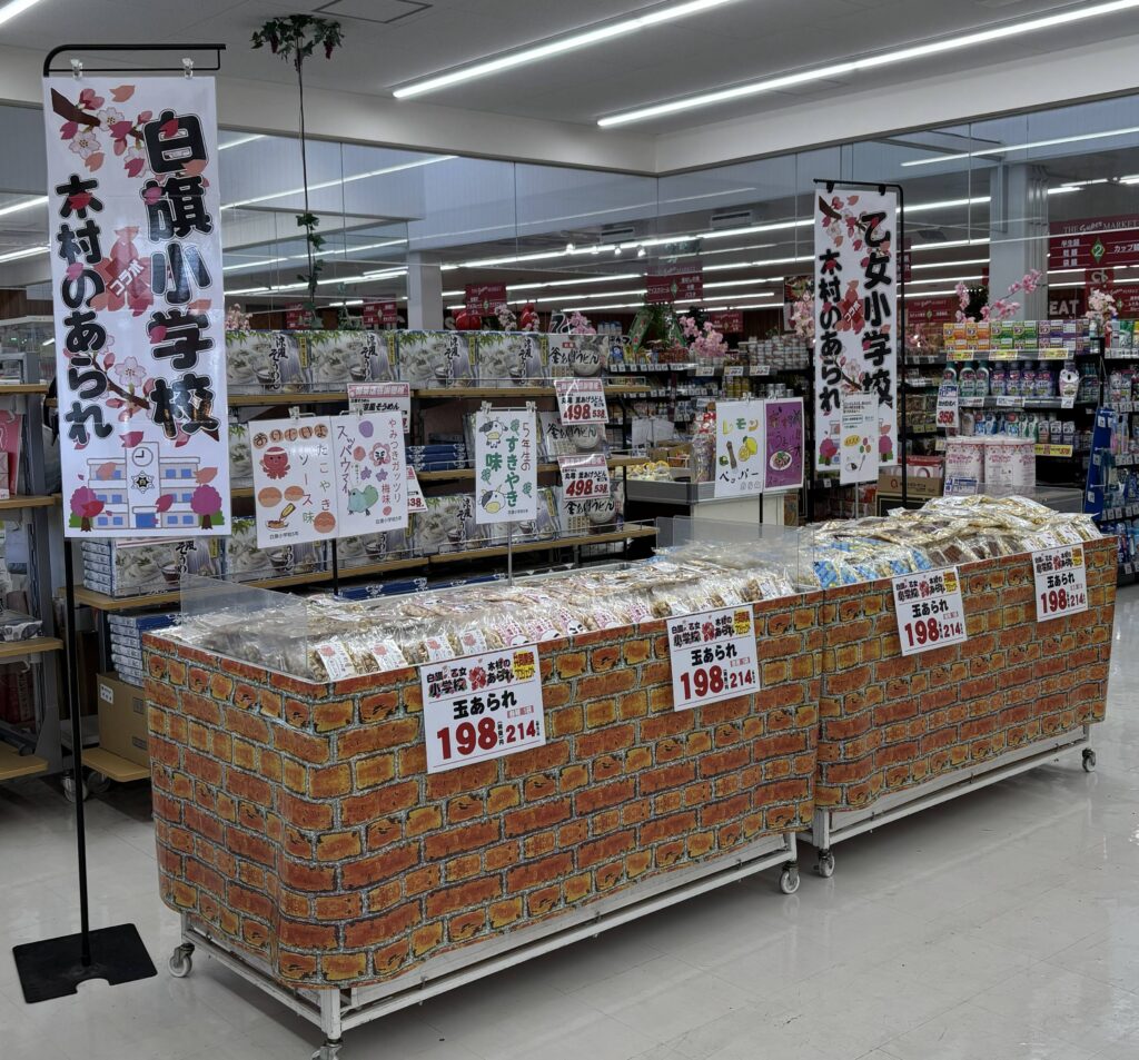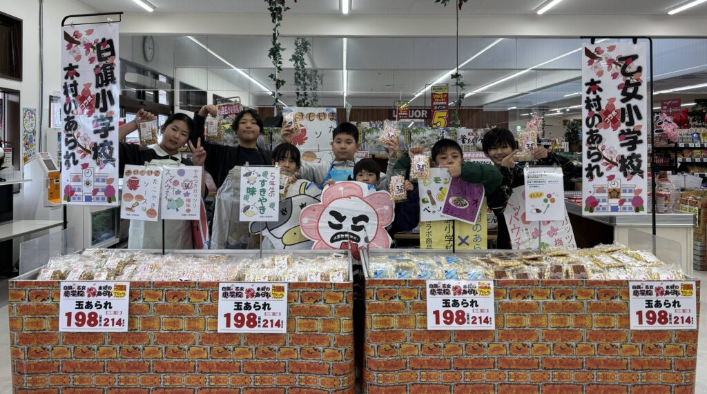 ぜひ、マルエイ 甲佐店様・御船店様で、子どもたちの力作をご覧いただき、今だけの特別なあられをご賞味ください!